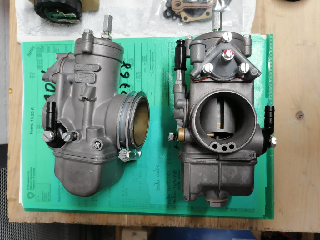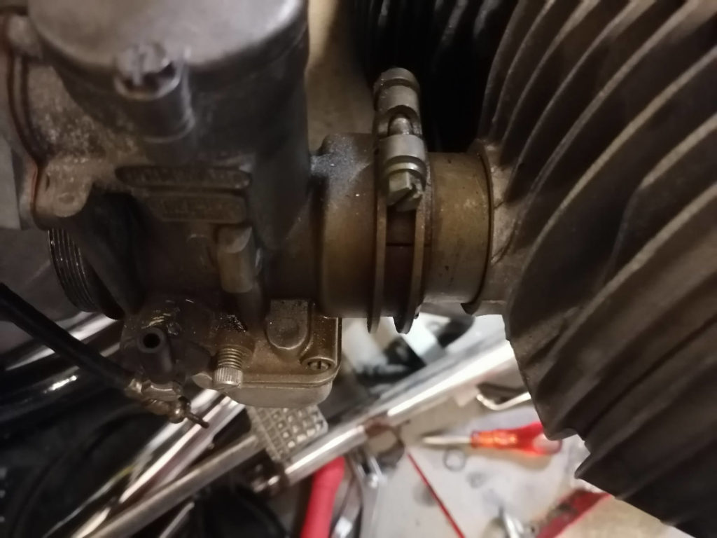 Les colliers de serrage entre le carburateur et la boîte à air avaient une finition terne, plus tard ils étaient chromés.
