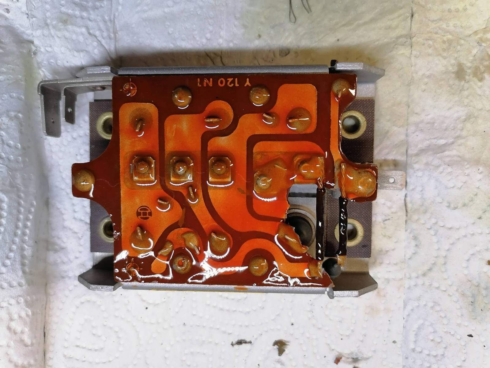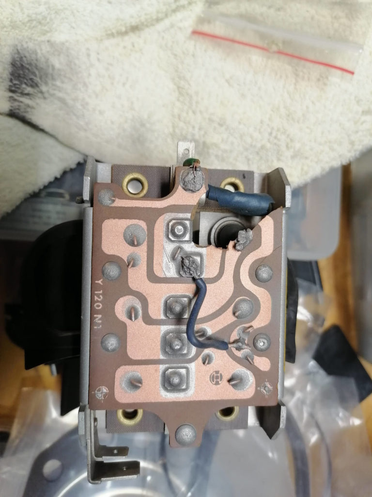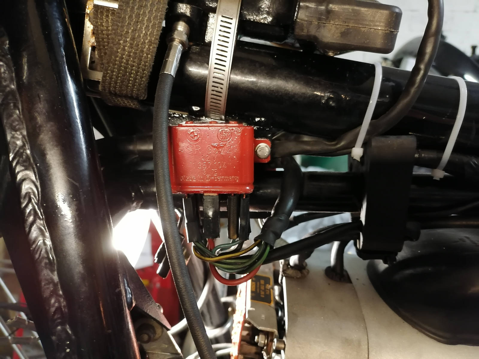 Le relais de démarrage a été vérifié et réglé puis remonté, serti avec du vernis à ongles.