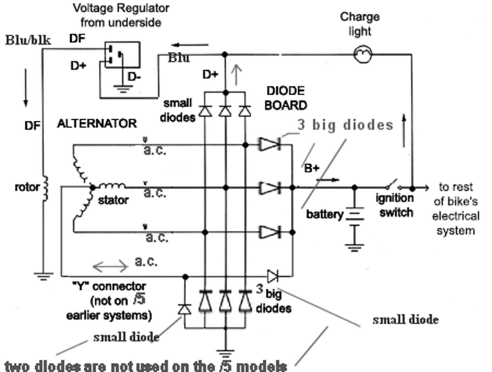 Schéma charge, les petites diodes qui vont sur le point Y de l’alternateur sont venues dans la version S6/S7