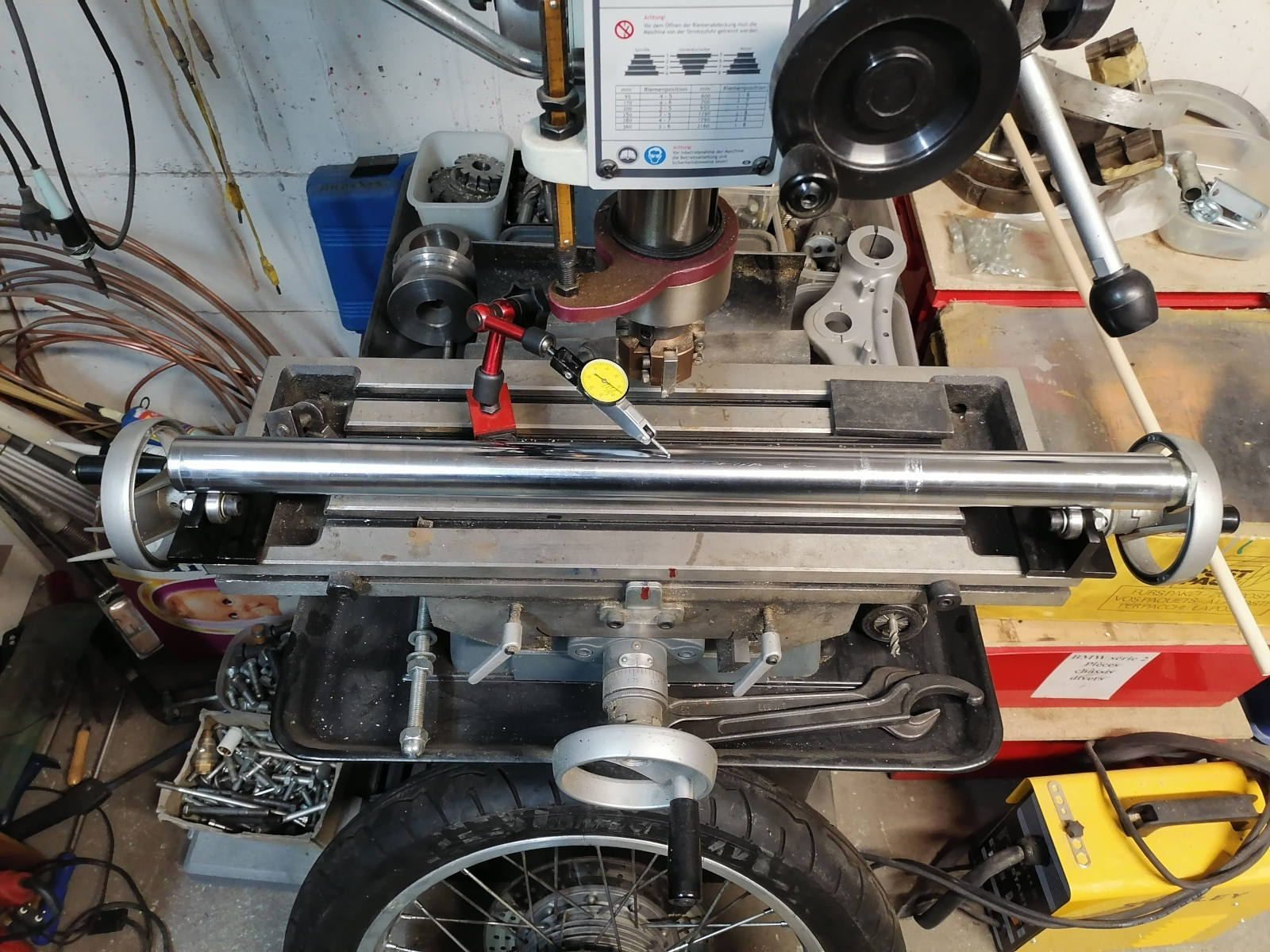 Vérification de la rectitude des tubes de fourche avant et redressage à la presse si besoin