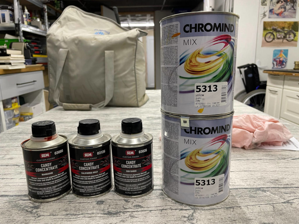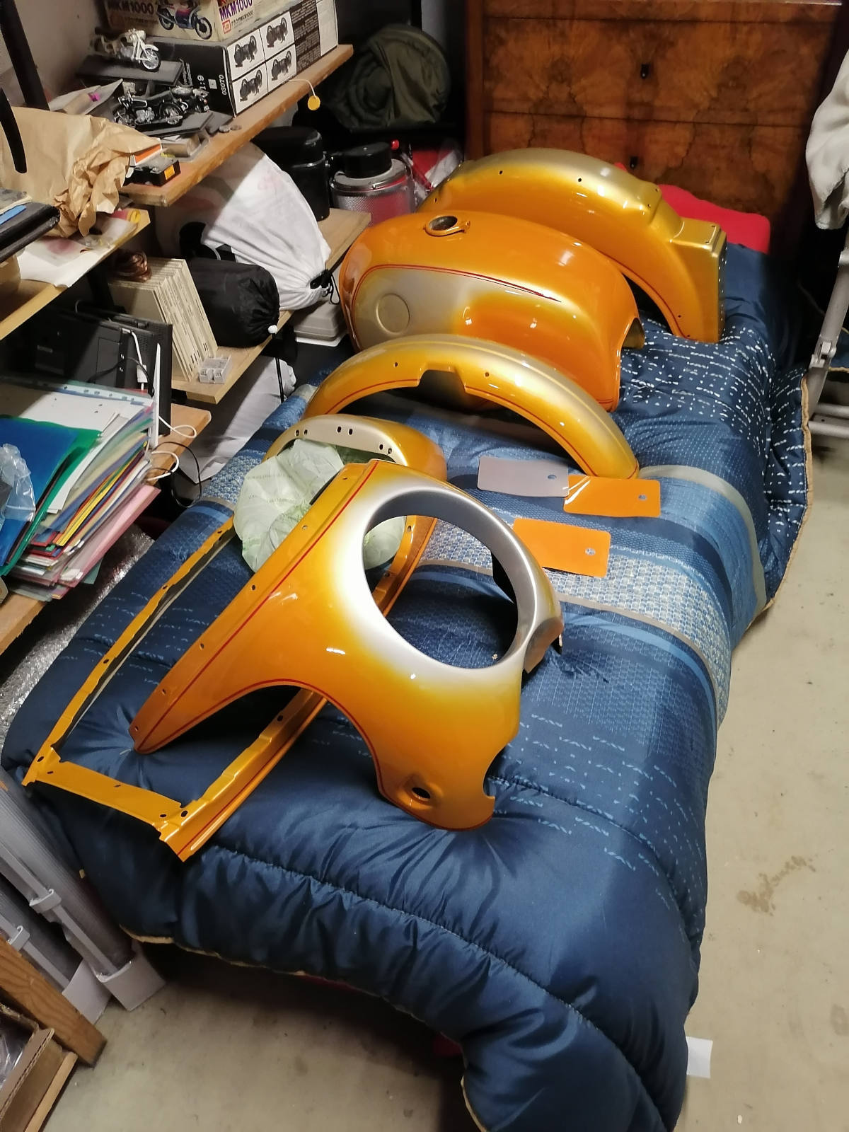 Merci Ghislain, pièces peintes par ma carrosserie après défection de Cedric Boulfre, la teinte a été faite par Carmouche (maintenant à la retraite), les filets sont l’œuvre de Pascal (Taka Hira)
